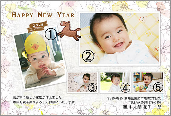結婚報告・出産報告はがきは西川カメラへ。当店オリジナルでおしゃれなポストカードを作成いたします。